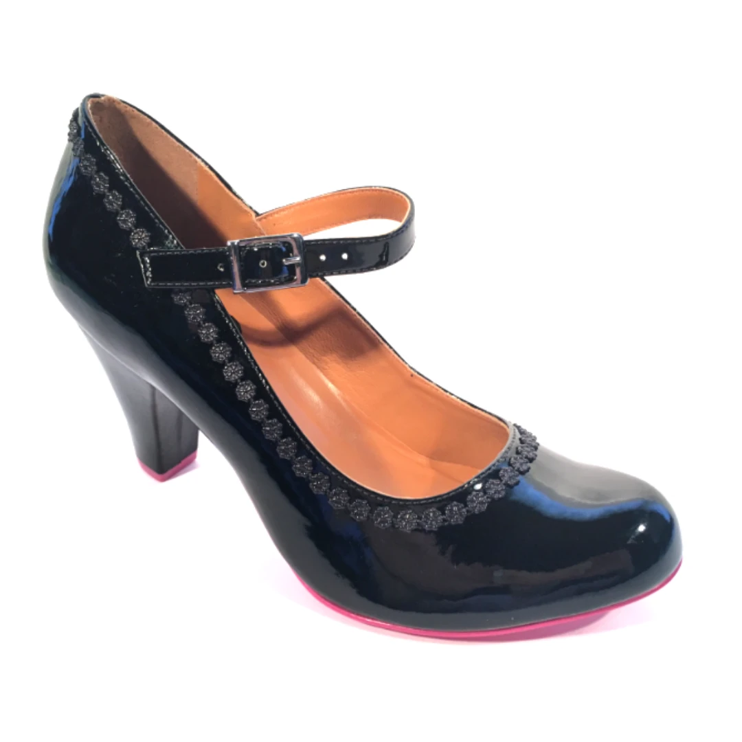 Indulge in these stunning patent leather shoes by Cristofoli. These feminine beauties have a flattering adjustable ankle strap, delicate black flower bead trimming and Cristofoli’s trade mark pink sole.