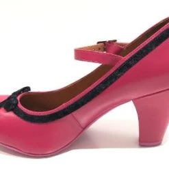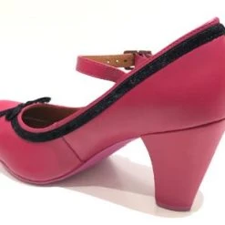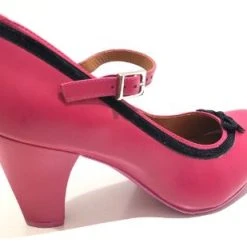 This vintage inspired Cristofoli Shoe is both timeless and elegant. Part of our Paris Boudoir inspired Collection, this beautiful shoe is in a vibrant hot pink leather, and it is adorned with a simple and very pretty black velvet ribbon, It also has an adjustable ankle strap for the perfect fit. It’s a fun twist to the classic pump