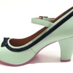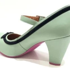 This vintage inspired Cristofoli Shoe is both timeless and elegant. Part of our Paris Boudoir inspired Collection, this beautiful shoe is in a delightful soft green leather, and it is adorned with a simple and very pretty black velvet ribbon, It also has an adjustable ankle strap for the perfect fit. It’s a fun twist to the classic pump