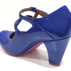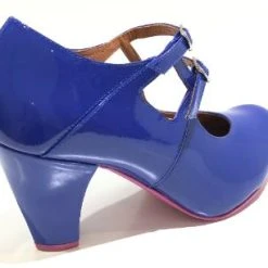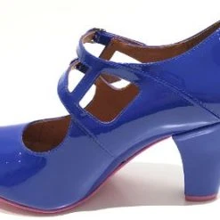This elegant vintage inspired Cristofoli Shoe will add a beautiful pop of colour to your wardrobe. This sweet shoe is in a gorgeous colbalt blue patent leather, and has a pretty double buckle strap.