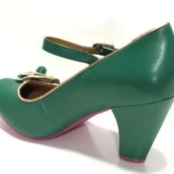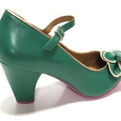 This vintage inspired Cristofoli Shoe is both timeless and elegant. This beautiful shoe is in a lovely green leather, with contrast piping in rose gold, sweet flower detail with rose gold embroidered edging and adjustable ankle strap. It’s a fun twist to the classic pump.