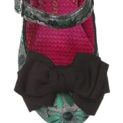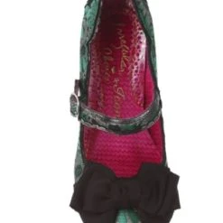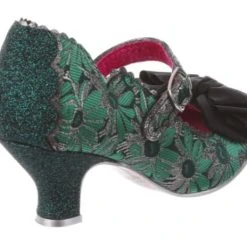Oh who doesn’t love our classic Summer Breeze mary jane style? These fan favourite mid heels are back, this time in a stunning green and silver brocade – accented with a black bow, and a dark green metallic wrapped heel with matching back panelling. These vintage style shoes are bright, fun and fabulous!