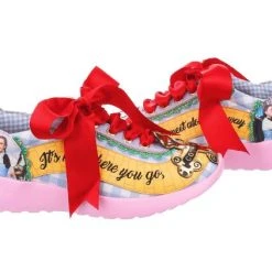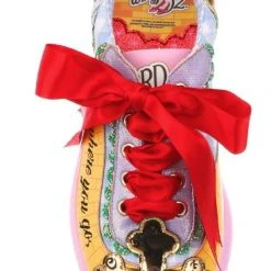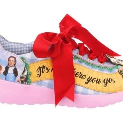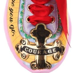 Brains, heart and courage – everything needed for the best of friends! These adorable statement trainers are adorned in everything the Wizard of Oz™, and the result is fabulous! The Yellow Brick Road™ winds around the shoes, with beautiful script scrolling across, leading to the statement applique on each toe – a medal for courage and a ticking heart! Fastened with brilliant red ribbons, and featuring a print of our favourite adventurers on the heel, these trainers are surely not to be missed!