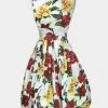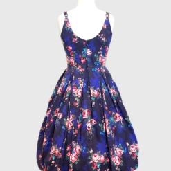 Oh so pretty! Beautiful Vintage inspired dress in beautiful rich royal blue with pretty pink rose floral detail. This gorgeous dress has wide adjustable straps and a double pleated skirt with side seam pockets.